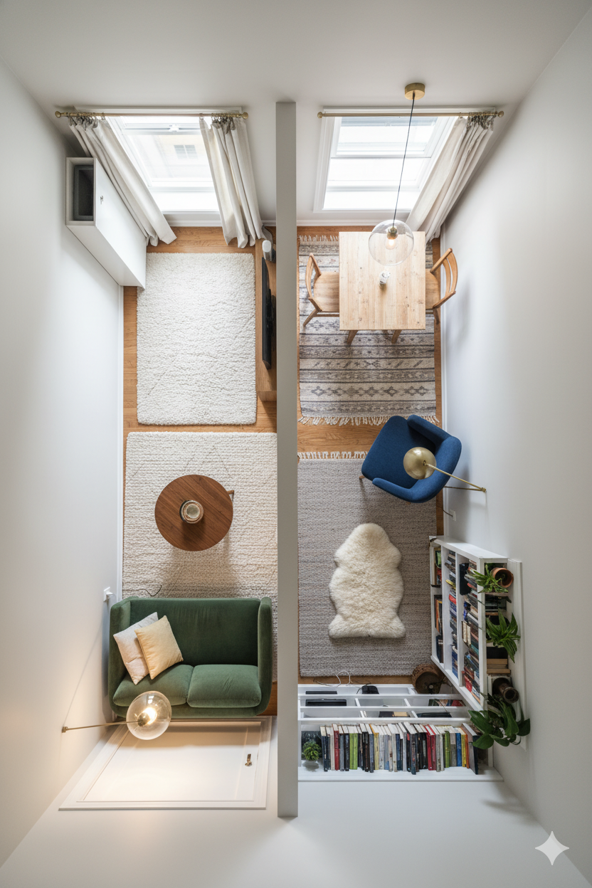 The challenge of a narrow room or a studio apartment is often seen as a limitation. This analysis reframes it as a design prompt. The solutions demonstrate that the core principles of good design are universal: Zoning , Floating furniture , embracing Multi-functionality , utilizing Verticality , and mastering Illusion with light and color.