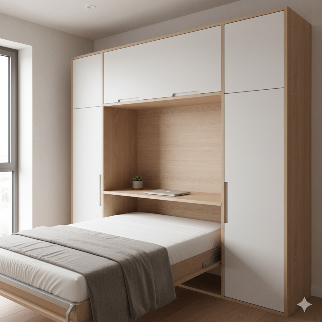 Sofa Beds and Murphy Beds: Sofa beds offer a comfortable seating area by day and turn into a bedroom by night. Murphy beds (wall beds) are a more radical solution, completely removing the bed during the day to give you a huge living room or workspace.
