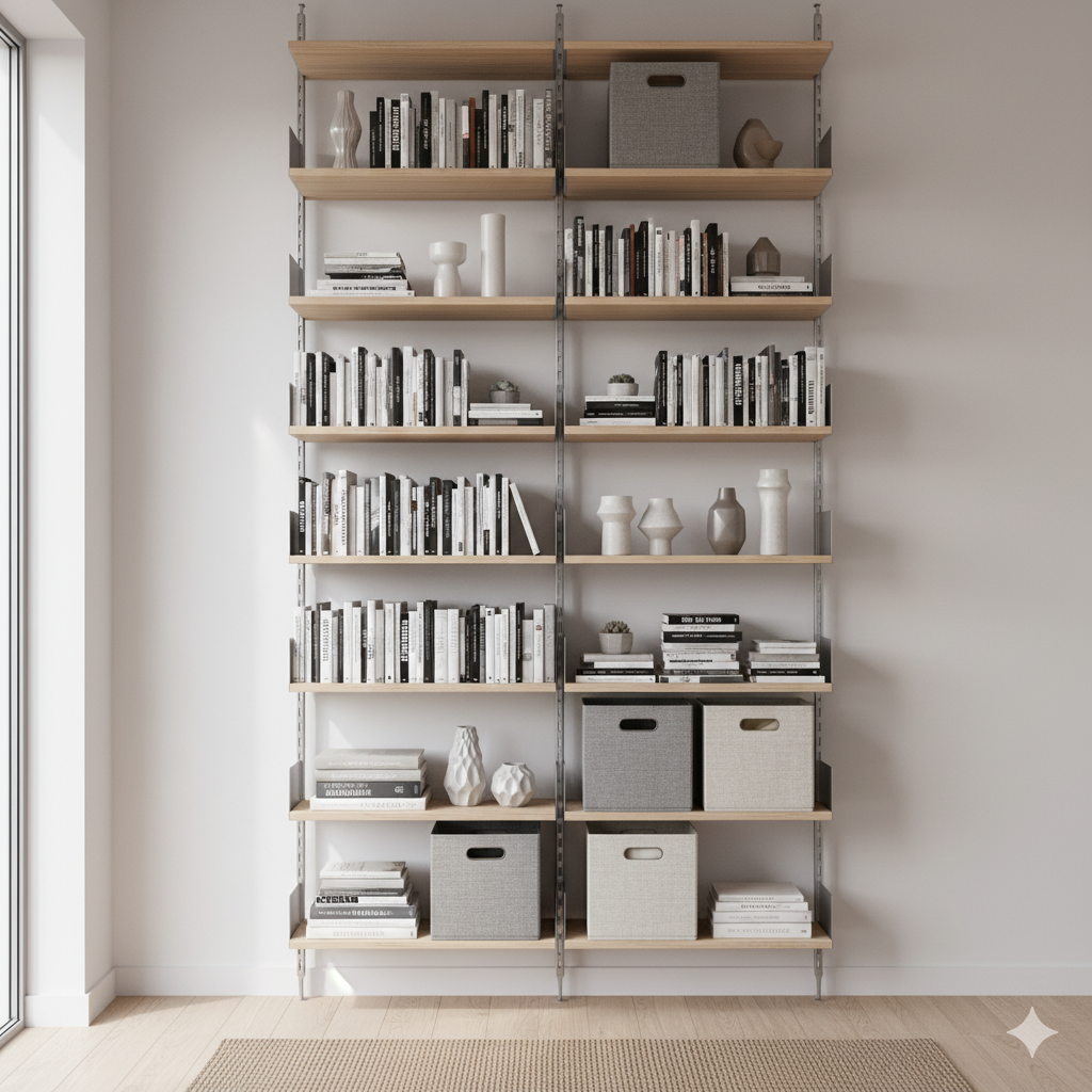 Floor-to-Ceiling Solutions: Tall, narrow bookshelves or shelving systems that go up to the ceiling offer incredible storage capacity and draw the eye upward.