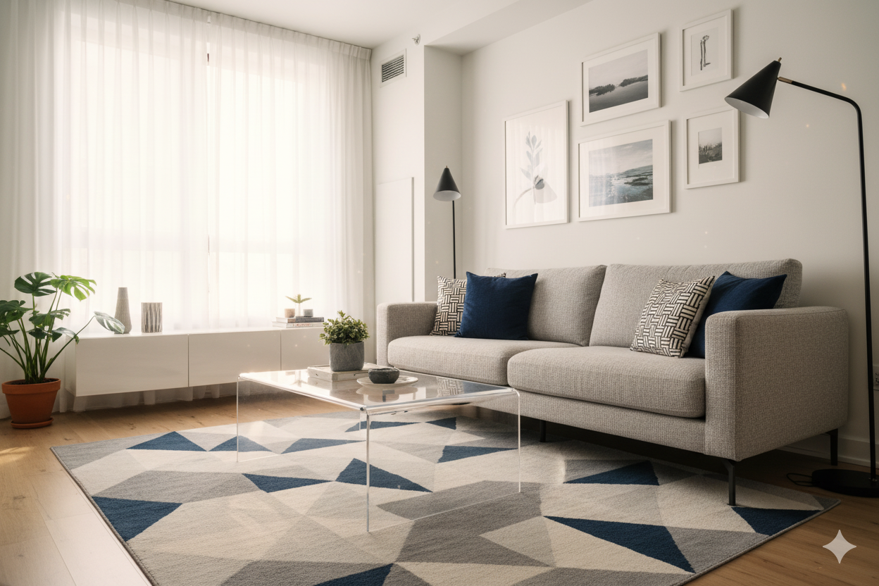 Define with Rugs: Use two separate but complementary area rugs to clearly define each zone. This is crucial for establishing the "two rooms" illusion. The rugs should have a common color or style to feel connected, but be distinct enough to signal a transition.