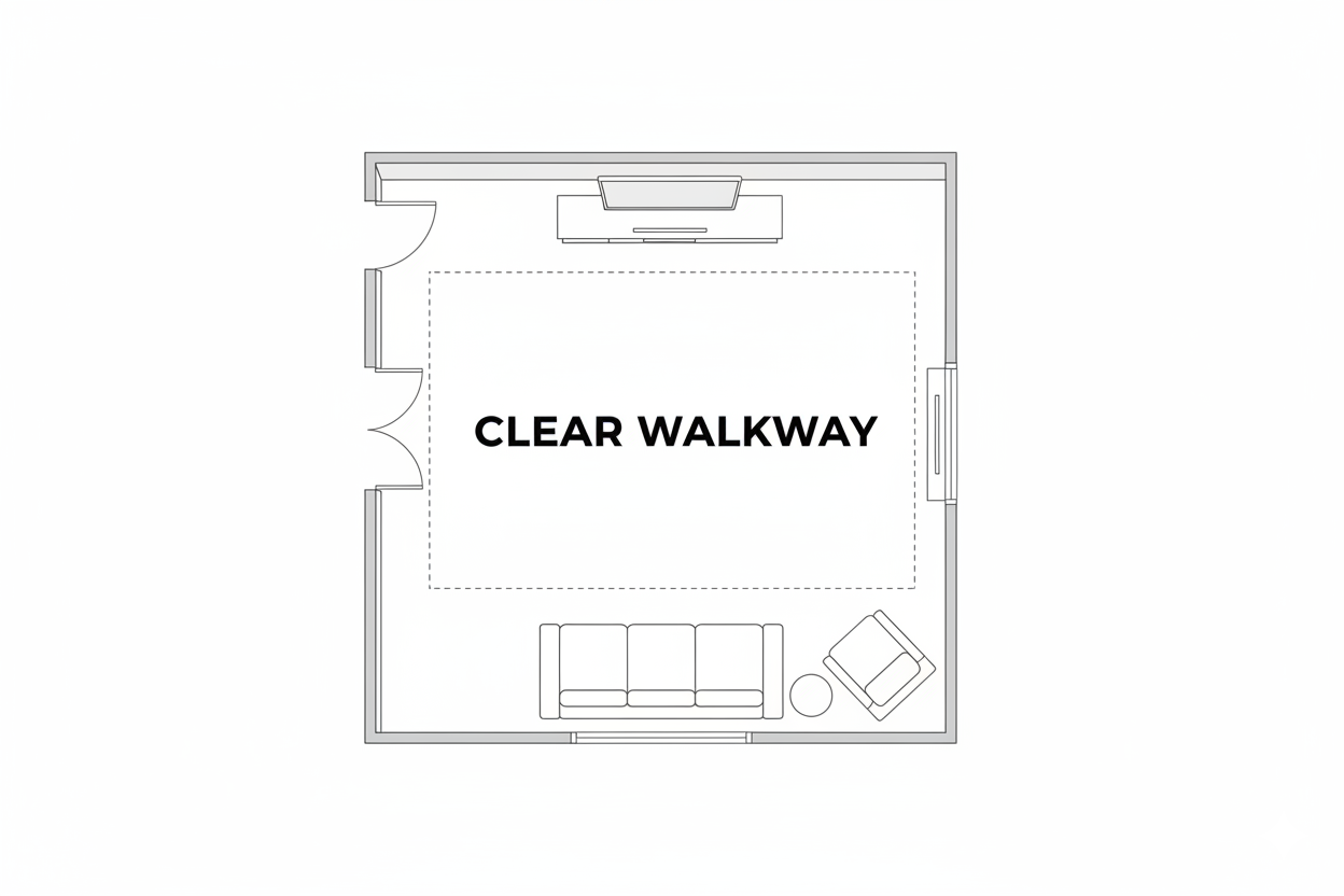 By formalizing a dedicated walkway, you eliminate the frustrating daily dance of weaving around furniture. This makes the "living zone" on the other side feel protected, cozy, and deliberate, rather than like a collection of obstacles in a hallway.