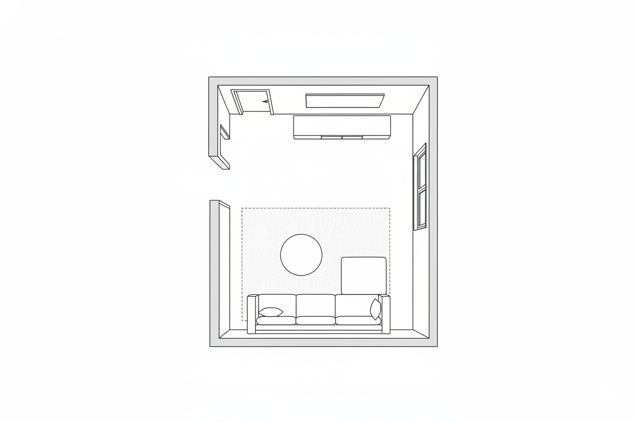 Anchor the Room: Place your main sofa against the longest uninterrupted wall. This is the gravitational center of your seating zone.
